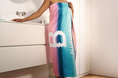 Das BLUPHORIA Badetuch sorgt mit seinem farbenfrohen Farbverlauf für gute Laune und ist ein echter Blickfang in deinem Badezimmer oder im Badeparadies!